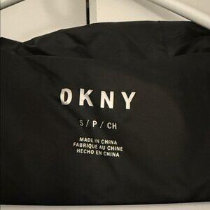 Chic DKNY jacket with quilted design. Features a full front zipper and side pockets.