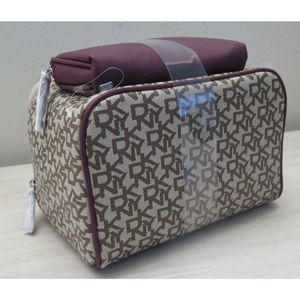 DKNY R84R4836 Women's O/S Beige/Red All Over "DKNY" Print 2 Piece Cosmetic Set