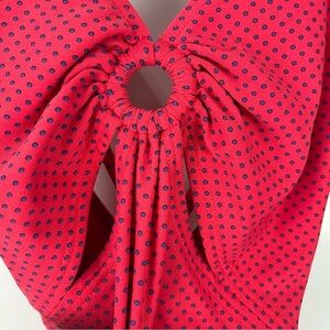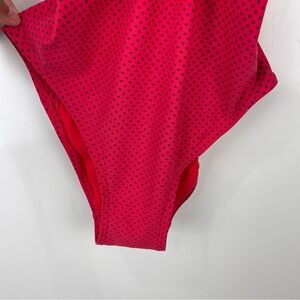 DKNY Red One Piece Swimsuit Blue Polka Dot Cut Outs Women's Size 12