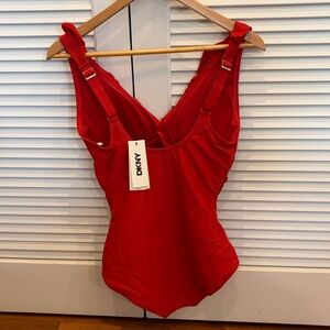 DKNY Red Ruffled Women's One Piece Swimsuit Size M NEW