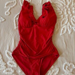 Absolutely beautiful and flattering red one piece bathing suit brand new with tags. Retail price $80.