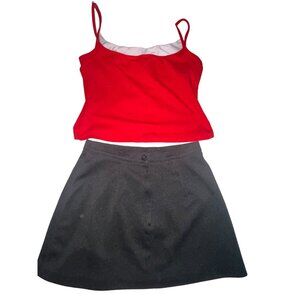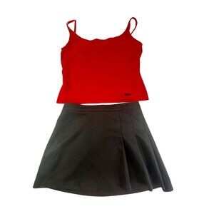 DKNY Red Spaghetti Strap Top & Black Varsity Cheerleader Skirt Set L / XL