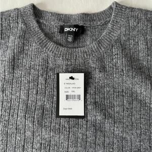 DKNY Rib Knit Sweater in Heather Grey Plus Size XXL