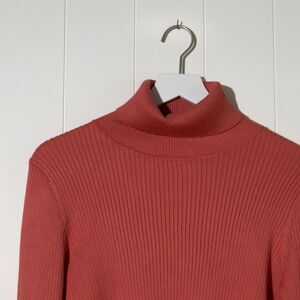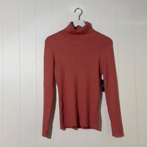 DKNY sweater, ribbed turtleneck, medium, rose pink sweater, cotton blend, long sleeve sweater, cozy turtleneck, fall fashion, winter wear, stylish knit, DKNY clothing, pink pullover, classic sweater, fashionable knitwear
