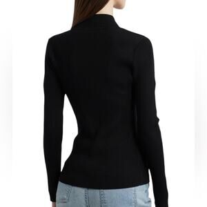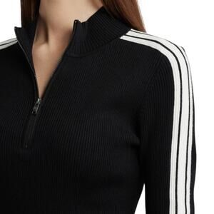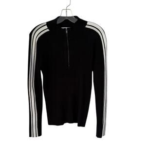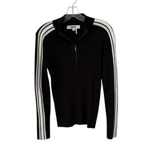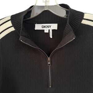 DKNY Ribbed Stripe Quarter Zip Mock Neck Long Sleeve Sweater - Med