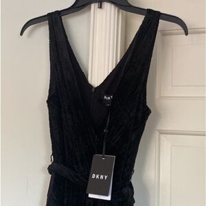 DKNY Women's Dress A-Line Velvet Raised Texture Sexy Wrap Look & Matching Sash Belt Accessory (Keeps It’s Shape ⭐️ ) Black