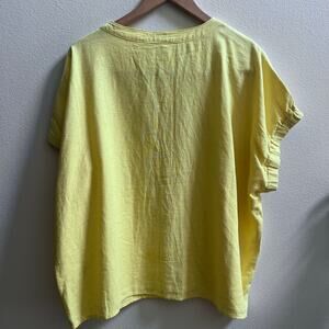 DKNY Round Neck Linen Blend Button Up Top Vacation Women's XL Mom Boxy Yellow