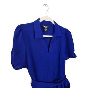 DKNY Royal Blue Waist Tie Short Cinch Sleeve V-Neck Dress