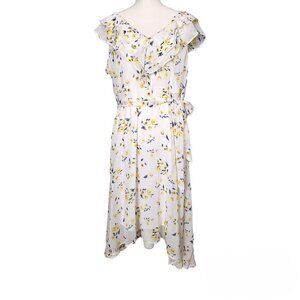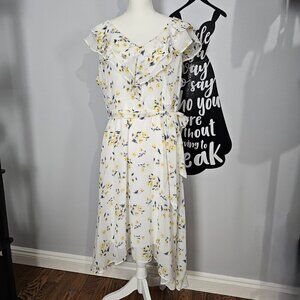 DKNY Ruffle Flutter Sleeve Floral Belted Hi-Lo Midi Dress New Size 16
