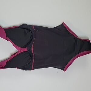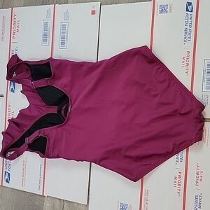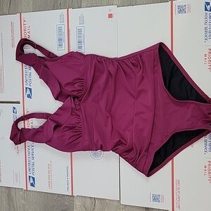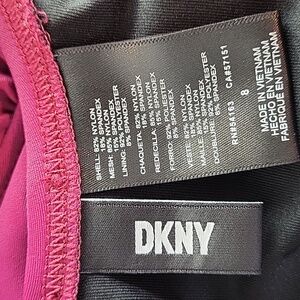 DKNY Ruffle Plunge Ruffle burgundy red One Piece Swimsuit