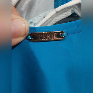 DKNY Ruffle Plunge Underwire Tummy Control One-Piece Swim Vibrant Blue Size 18