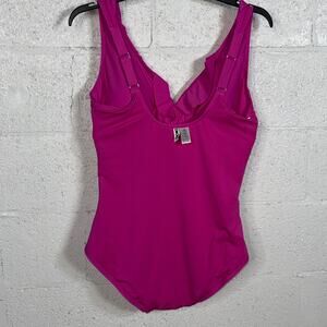 DKNY Ruffle Plunge Underwire Tummy Control One-Piece Swimsuit PINK XXL