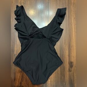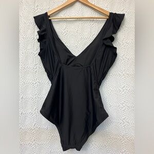 DKNY Ruffle-Trim One-Piece Swimsuit Size XXL Black Tummy Control Modest Pool