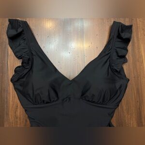 DKNY Ruffle-Trim One-Piece Swimsuit Size XXL Black Tummy Control Modest Pool Beach Cruise Resort