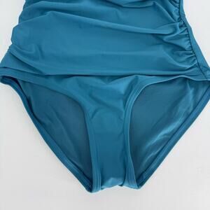 DKNY Ruffled One-Piece Tummy Control Swimsuit Teal XS