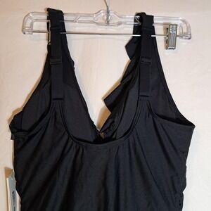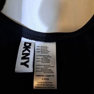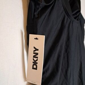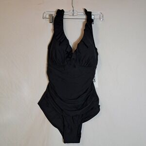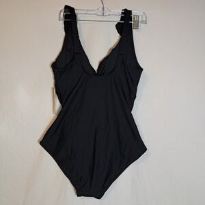 DKNY Ruffled Plunge V-Neck One Piece Women's Size Large Black NEW $79.99