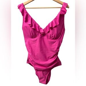 DKNY Ruffled Plunge V-Neck Shirred One-Piece Swimsuit