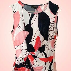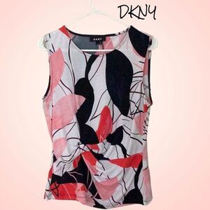 DKNY SLEEVELESS TOP BLOUSE MEDIUM NAVY BLUE/PINK/CORAL FLORAL DESIGN