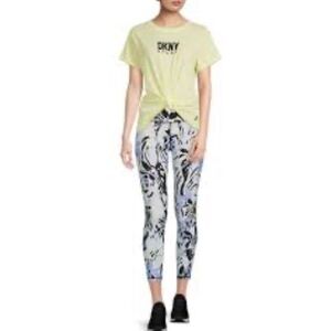 DKNY Sport Cotton Embroidered Logo Tee in lemon yellow with black DKNY logo stitching is in LADIES LARGE. The MSRP is $40. Relaxed fit and slightly cropped, this cute tee has little 1/4”tacked-up sleeve cuffs. The pit-to-pit measurement is 25”, the length is 25” and the sleeves are 6.5”. It’s 100% COTTON, so it’s machine washable. This is adorable for a work out or just hanging out. And it’s NWT!