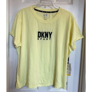 DKNY SPORT - L Sz L - Cotton Embroidered Logo Tee in Lemon Yellow. NWT!