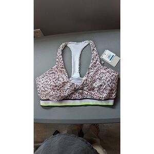 DKNY SPORT Women's Printed Low-Impact Sports Bra, Atomic Confetti, XL