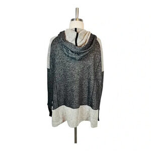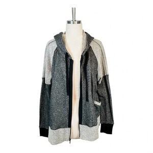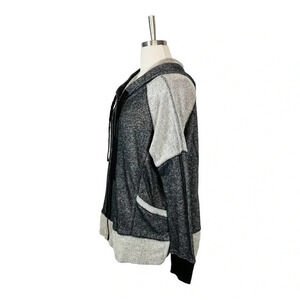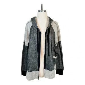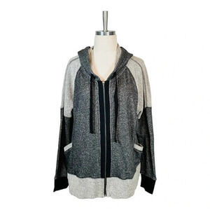 DKNY Jeans gray and black hoodie jacket, sweatshirt, super soft, tri-toned, full zip, pockets, side slits, lightweight, women's, size small.