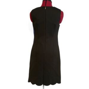 DKNY Scalloped Sheath Dress Woman Size 2 Cream/Blue/Black Color Block Sleeveless