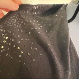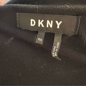 Great condition, looks like a row of sequins may be missing on one side as pictured. DKNY. sequin collar open front cardigan. Black. Waterfall front. Size XS/S. 75% viscose, 25% nylon. Pit to pit laying flat 20” shoulder to hem 22”/31” Sleeve (seam to hem) 24”. All measurements are approximate and taken lying flat. Smoke free home. No trades, offers welcome.