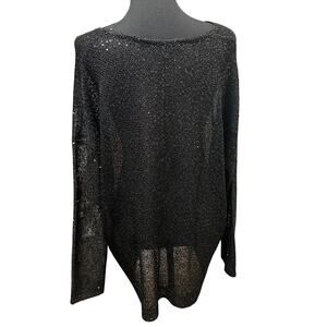 DKNY Sequin Embellished V-Neck Light Knit Sweater - XL