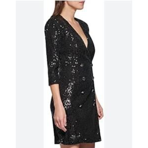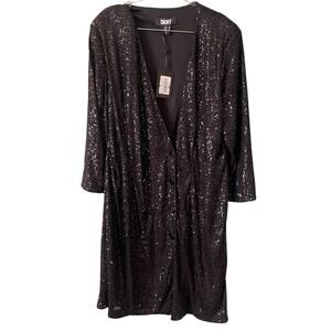 DKNY Sequin V-Neck Tailored Blazer Cocktail Dress Black Size 18-New with tags