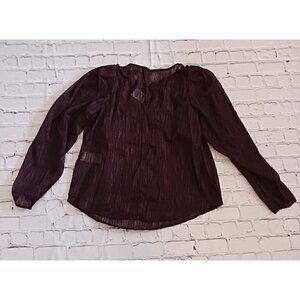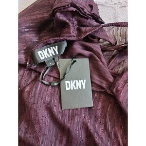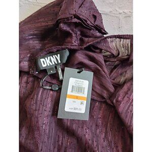 DKNY Sheer 3/4 Sheer Puffed Sleeve Shimmer Detail Round Neck Blouse/NWT, Size S