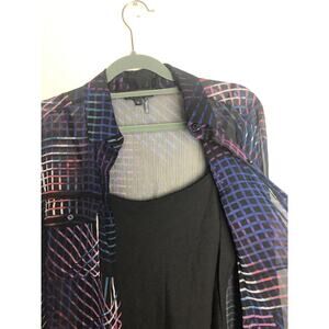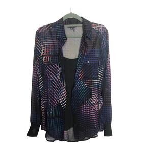 DKNY Sheer Long Sleeve Button Up Shirt w/ Cami Women’s XS Black Multi Geometric