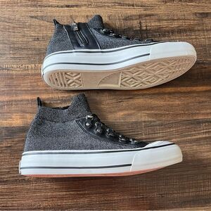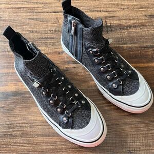 DKNY Sheila Sock Lace Black/Gray Platform Sneakers Shoes with Zipper Size 8