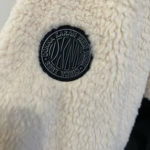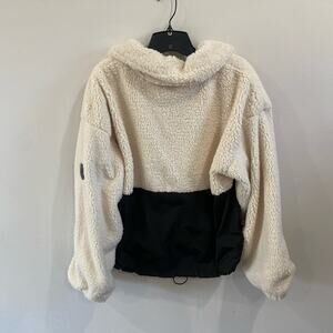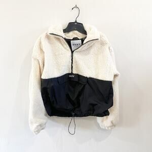 DKNY Sherpa Fleece Half Zip Jacket Cream Black Colorblock Pullover Cozy Sz XL