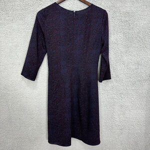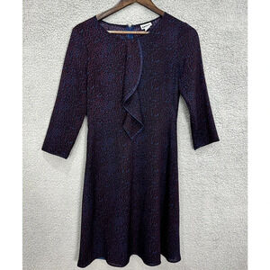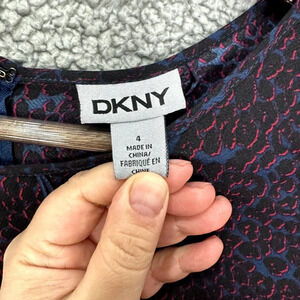 DKNY Shift Dress Women 4 Blue Animal Leopard Print 3/4 Sleeve Ruffle Boho Preppy