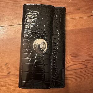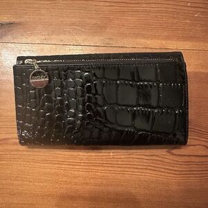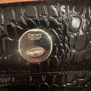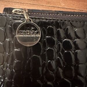 DKNY Shiny Black Croc Print Faux Patent Leather Wallet Women’s