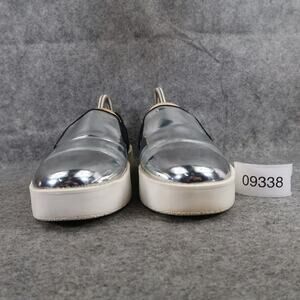 Used DKNY Shoes Womens 6.5 Fashion Sneakers Slip On Casual Metallic Silver Platform