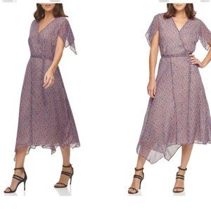 DKNY Short Sleeve Chiffon Midi Dress Size 10 - NWT