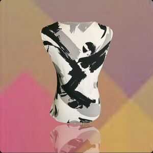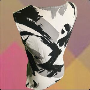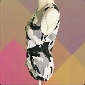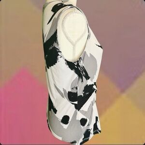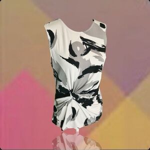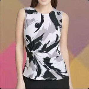 DKNY Side-Knot Shell Sleeveless Top in “Brushstroke Grey” Size Small