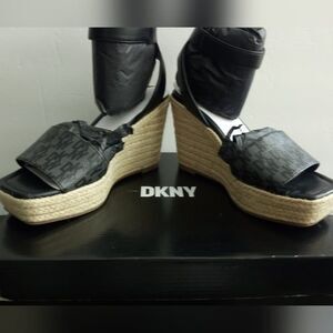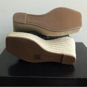 DKNY Sigmature Logo Platform Sandal Calima Ankle Strap Espadrille Size 6.5 $89