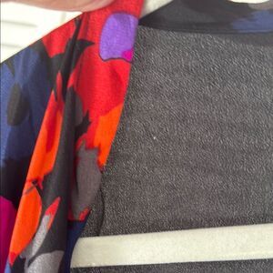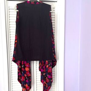 DKNY Silk Black and Red Floral Shrug Vest with Asymmetrical Hem