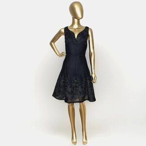 DKNY Size 10 Fit & Flare Embroidered Mesh Floral Dress in Black Cocktail Party