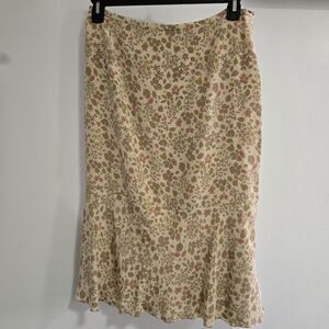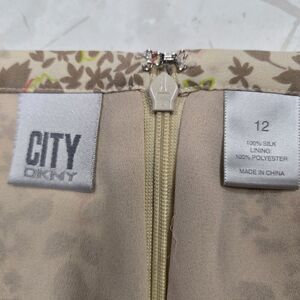 DKNY Size 12 100% Silk Floral Lined Knee Length Straight Skirt w/ Flared Hemline