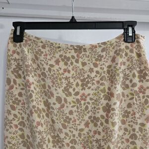 Elevate your wardrobe with this stunning DKNY skirt. The knee-length, straight and pencil style skirt is made of 100% silk material and features a beautiful floral pattern. The skirt is lined and has a lightweight feel, making it perfect for any occasion - from casual to business and even parties. The skirt has a zip closure and a flared hemline with seaming detail accents. Its multicolor design is perfect for those who love bohemian, nature, art, hipster and retro themes. This skirt is a must-have for any fashion-forward woman. The overall condition is excellent and shows little wear. See pictures for details. All measurements are approximate and includes 32 inch waist and 28.5 inches from waist to hemline. #9813