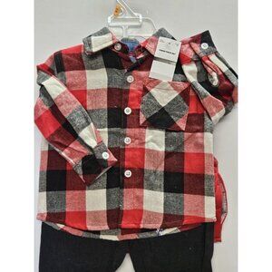 DKNY Size 12M Set Of 3, Red Vest/ Black Pants/ Red Plaid Button Up Long Sleeve
