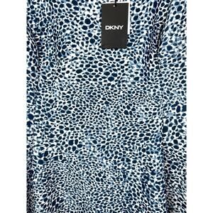 DKNY Donna Karen New York Size 14 Blue and White Speckled Fit and Flare Dress Short Puff Sleeves New with Tags