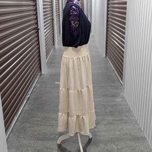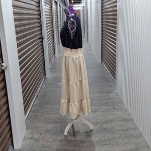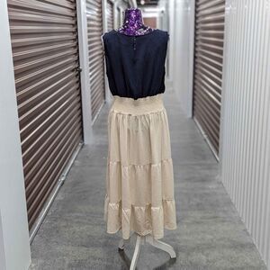 DKNY Size 14 NWT Navy Blue & Cream Midi Waterfall Boho Tier Dress