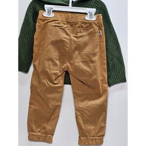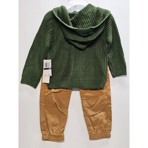 DKNY Size 18M Baby Boys Set Of 2, Green Olive Hoodie, Brown Pants With Pockets