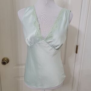 DKNY Size 4 Light Pistachio Green Lace Trim Camisole, Side Zipper Closure. Gorgeous, Feminine, and Soft, This Camisole is On Trend this Summer! Wear Alone or Under a Blazer. Dress Up or Down! No Holes, Rips, Stains or Snags. Please refer to measurements in photos to ensure proper fit. Shown on size 4-6 mannequin.
