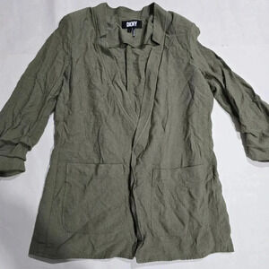 DKNY Size Small Open Front Cardigan Jacket 3/4 sleeves Olive Green